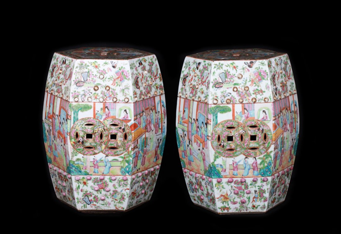 Rose Medallion Garden Stool / A true pair of porcelain seats of the period with charming.